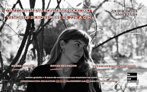 28 November 79200 [jazz] Anastasia Konstantinidou Trio The Dissident Club 58 rue Richer 75009 Paris, France
