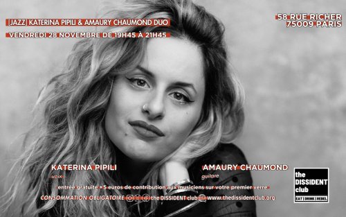 28 November 71100 [jazz] Katerina Pipili & Amaury Chaumond Duo The Dissident Club 58 rue Richer 75009 Paris, France